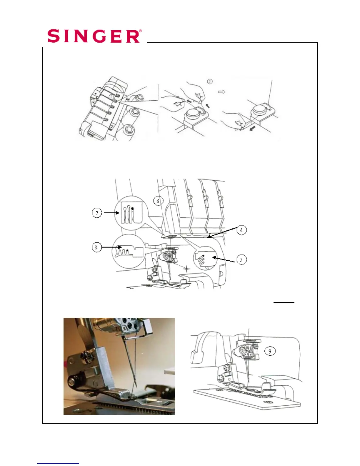 4. Continue to thread points 4-8. Slip the thread into the rear slot of the