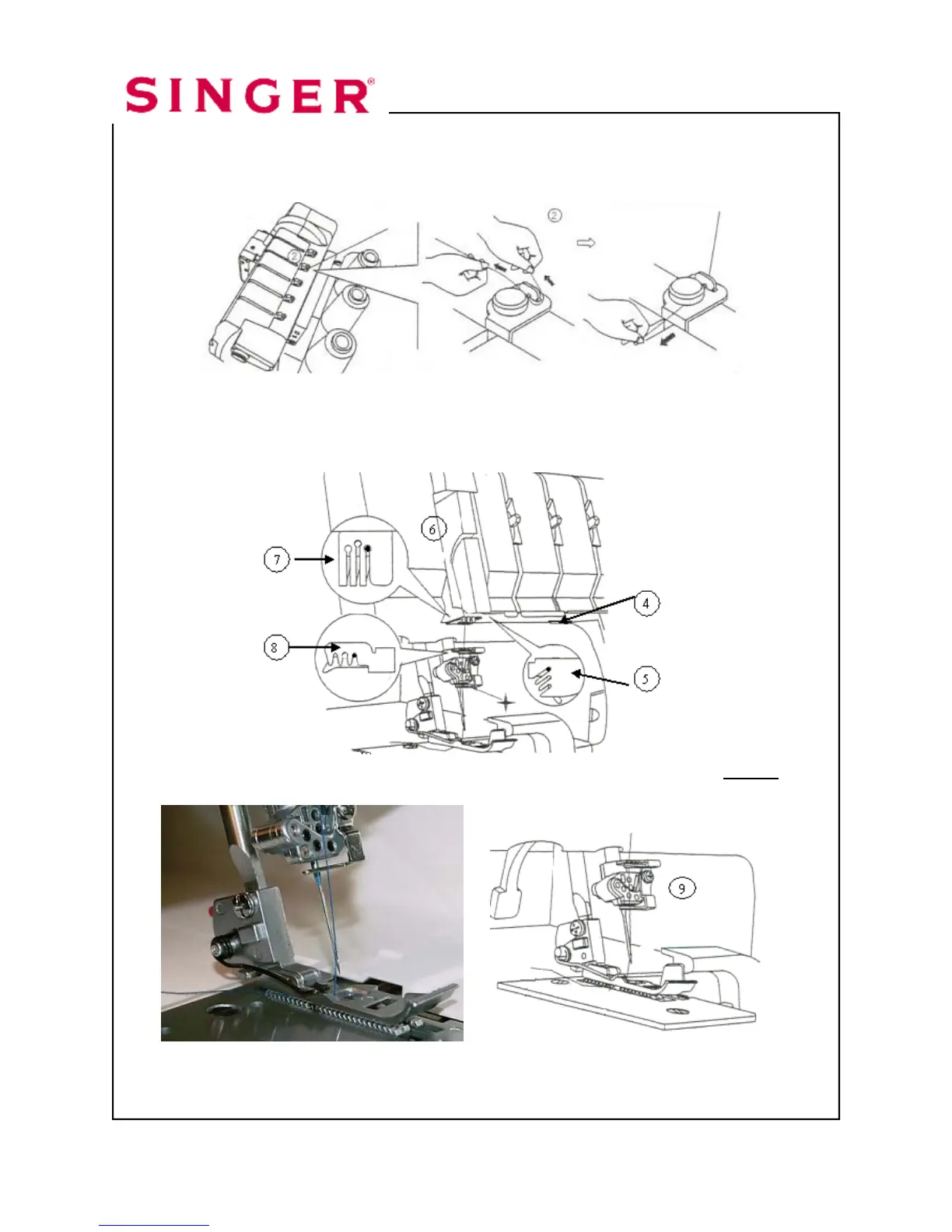 thread guide . Go over the take up lever . Continue by slipping the
