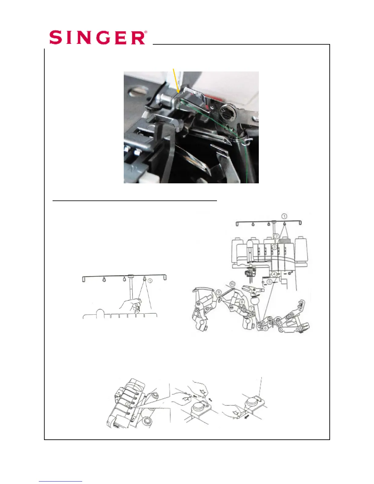 7. Thread the hole in the Upper Looper from front to back . Pull about 4