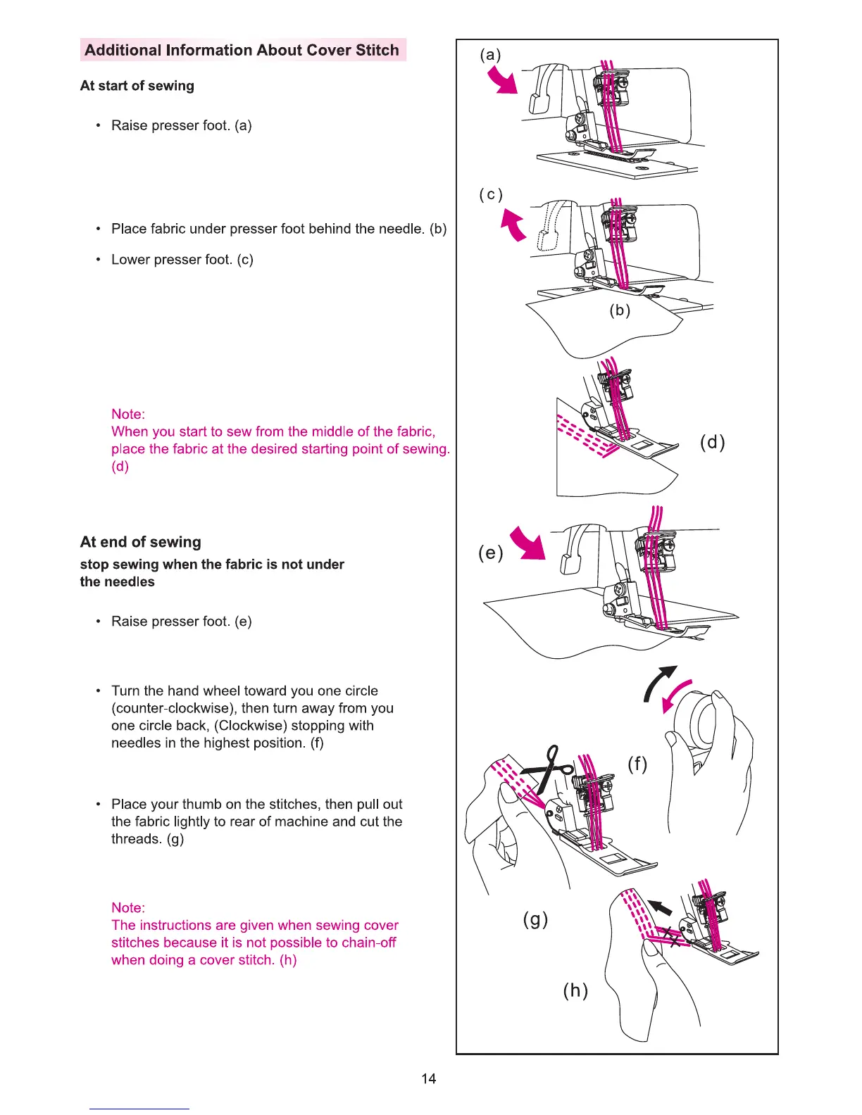 Singer 14T970C - Additional Information about Cover Stitch; At Start of Sewing; At End of Sewing