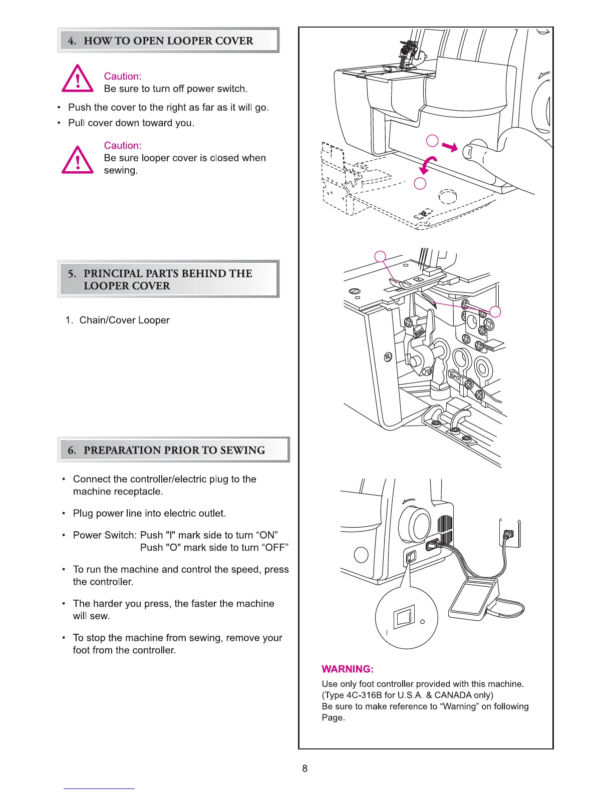 Singer 14T970C - How to Open Looper Cover; Principal Parts Behind the Looper Cover; Preparing Prior to Sewing