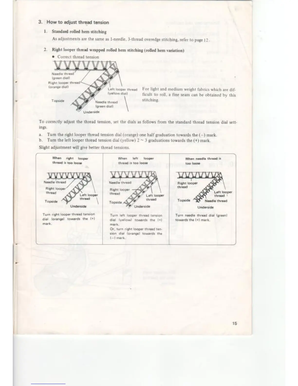 Singer 14U134 - Standard Rolled Hem Stitching; Right Looper Thread Wrapped Rolled Hem Stitching