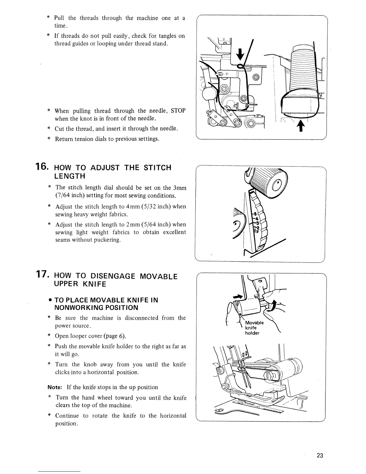 Singer 14U44B - How to Adjust the Stitch Length; How to Disengage Movable Upper Knife