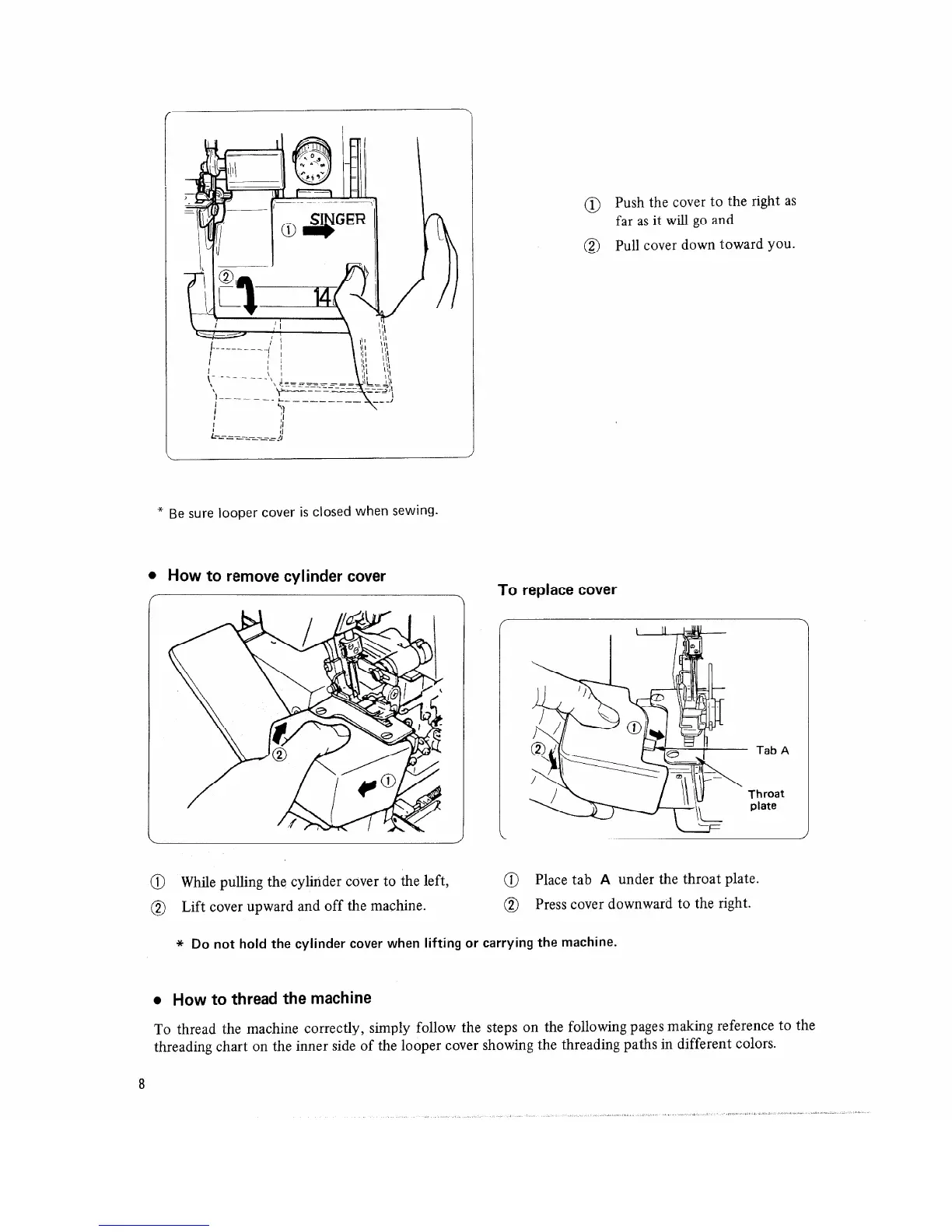 Singer 14U46B - How to Remove Cylinder Cover; How to Thread the Machine