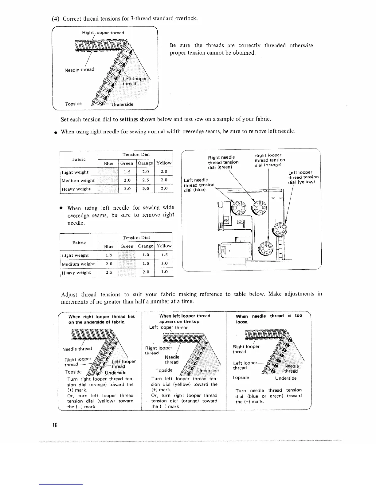 Singer 14U46B - When Right Looper Thread Lies on the Underside of Fabric; When Left Looper Thread Appears on the Top; When Needle Thread Is too Loose