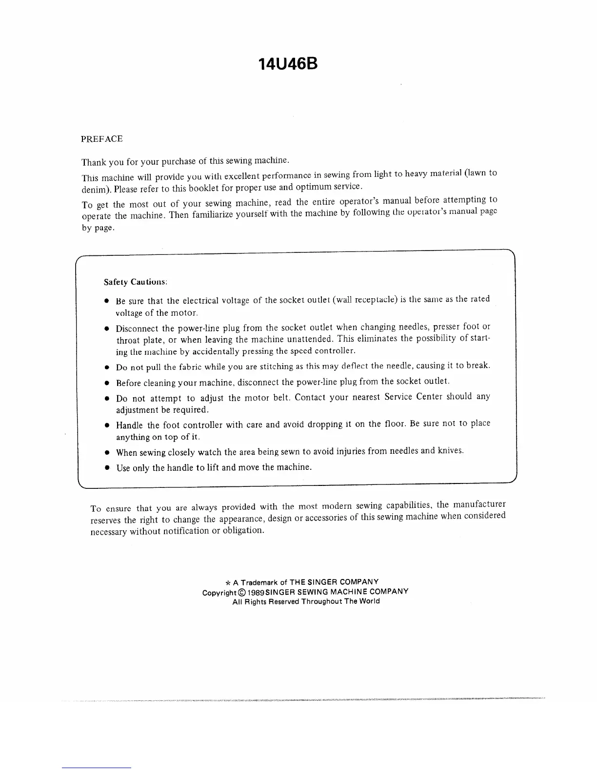 Singer 14U46B - Safety Cautions