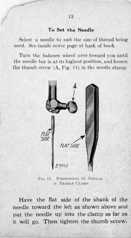 the thumb screw (A, Fig. 11) in the needle clamp.