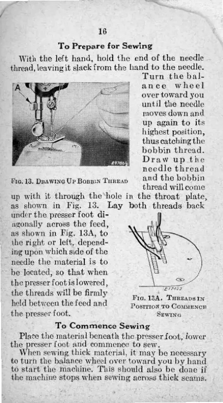 FIG. 13. DRAWING UP BOBBIN THREAD