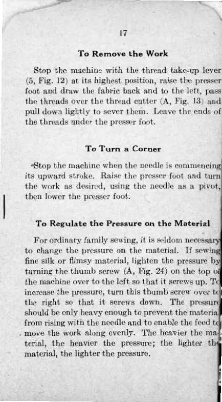 (5, Fig. 12) at its highest position, raise the presser