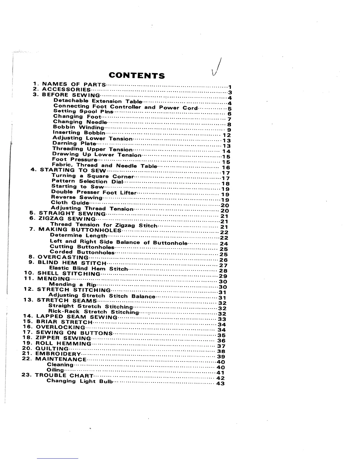Singer 1505 - Contents