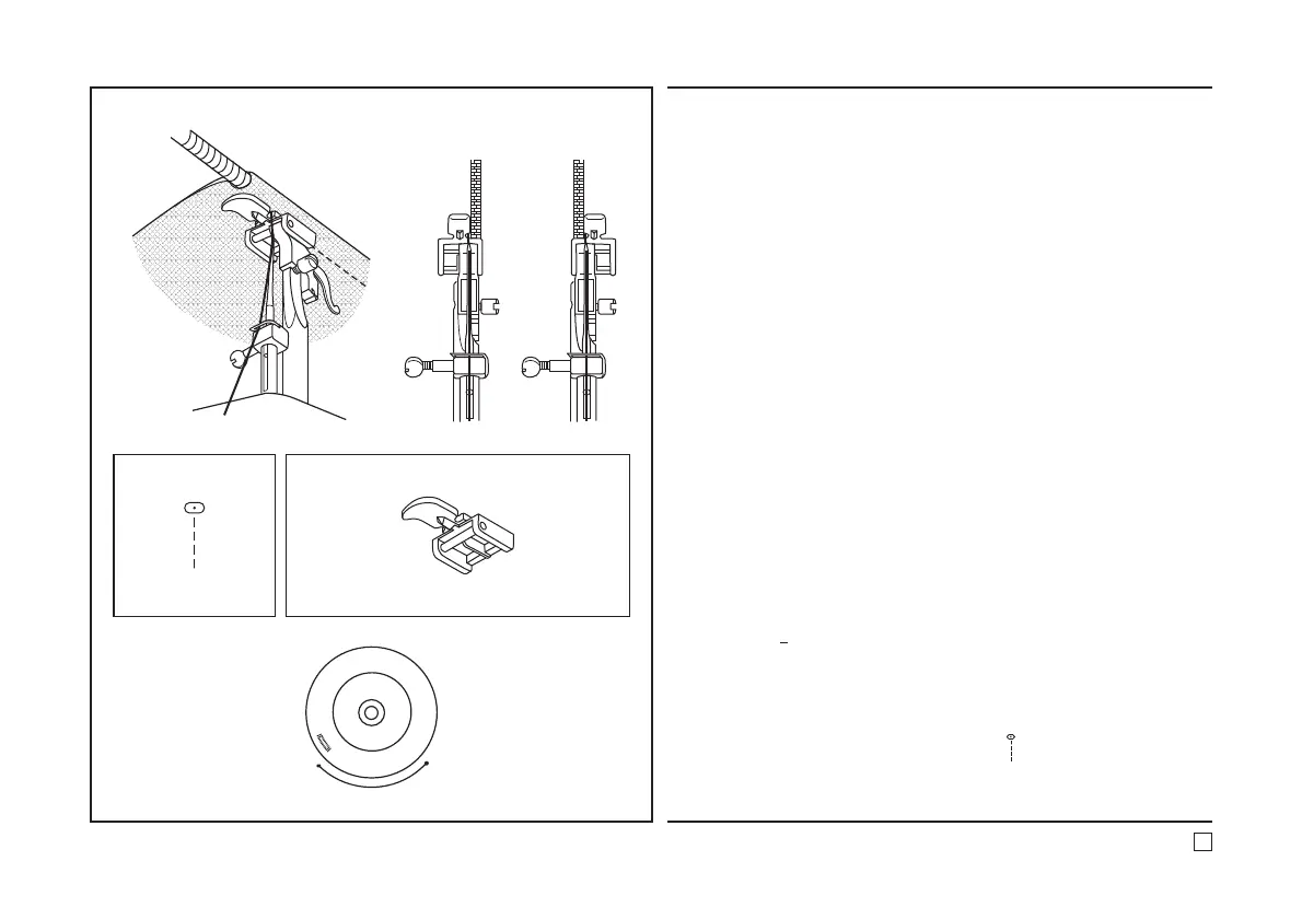 Untuk menjahit melewati tab resliting, turunkan jarum ke kain,