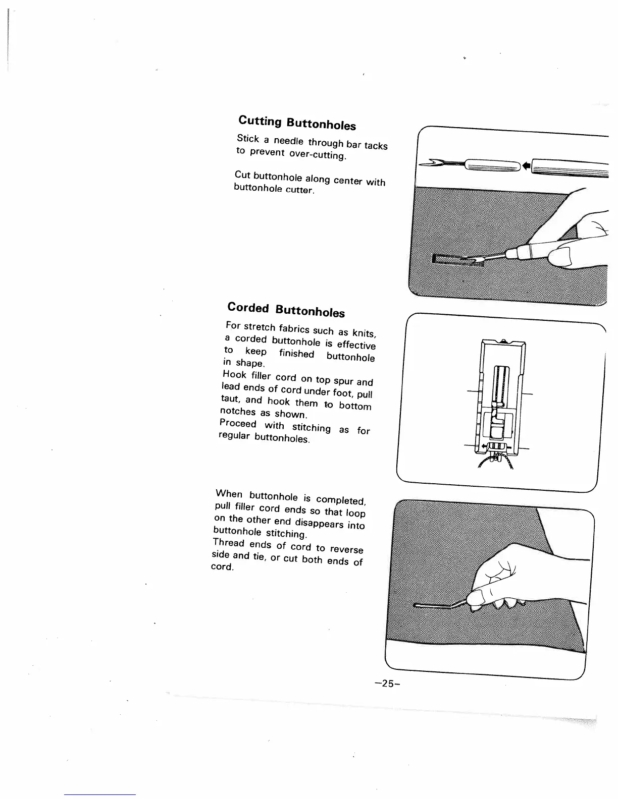 Singer 1510 - Cutting Buttonholes; Corded Buttonholes