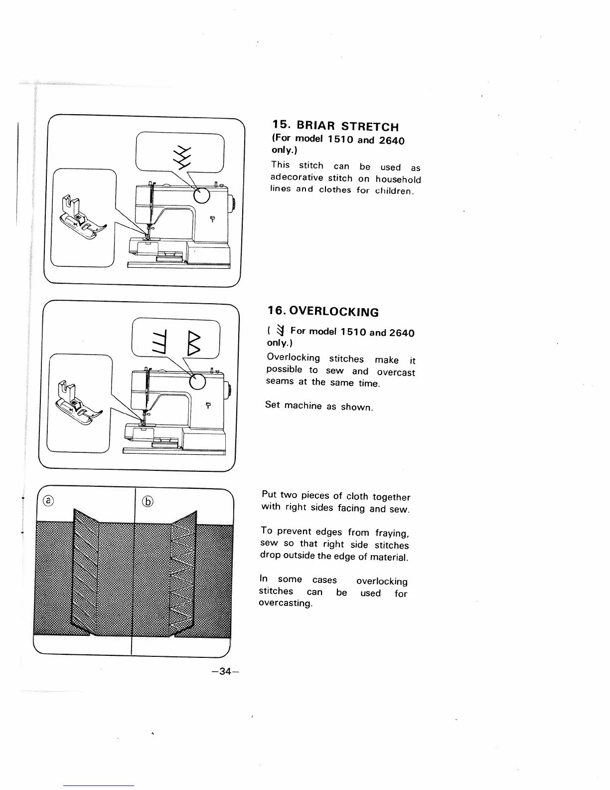 Singer 1510 - 15. BRIAR STRETCH; 16. OVERLOCKING