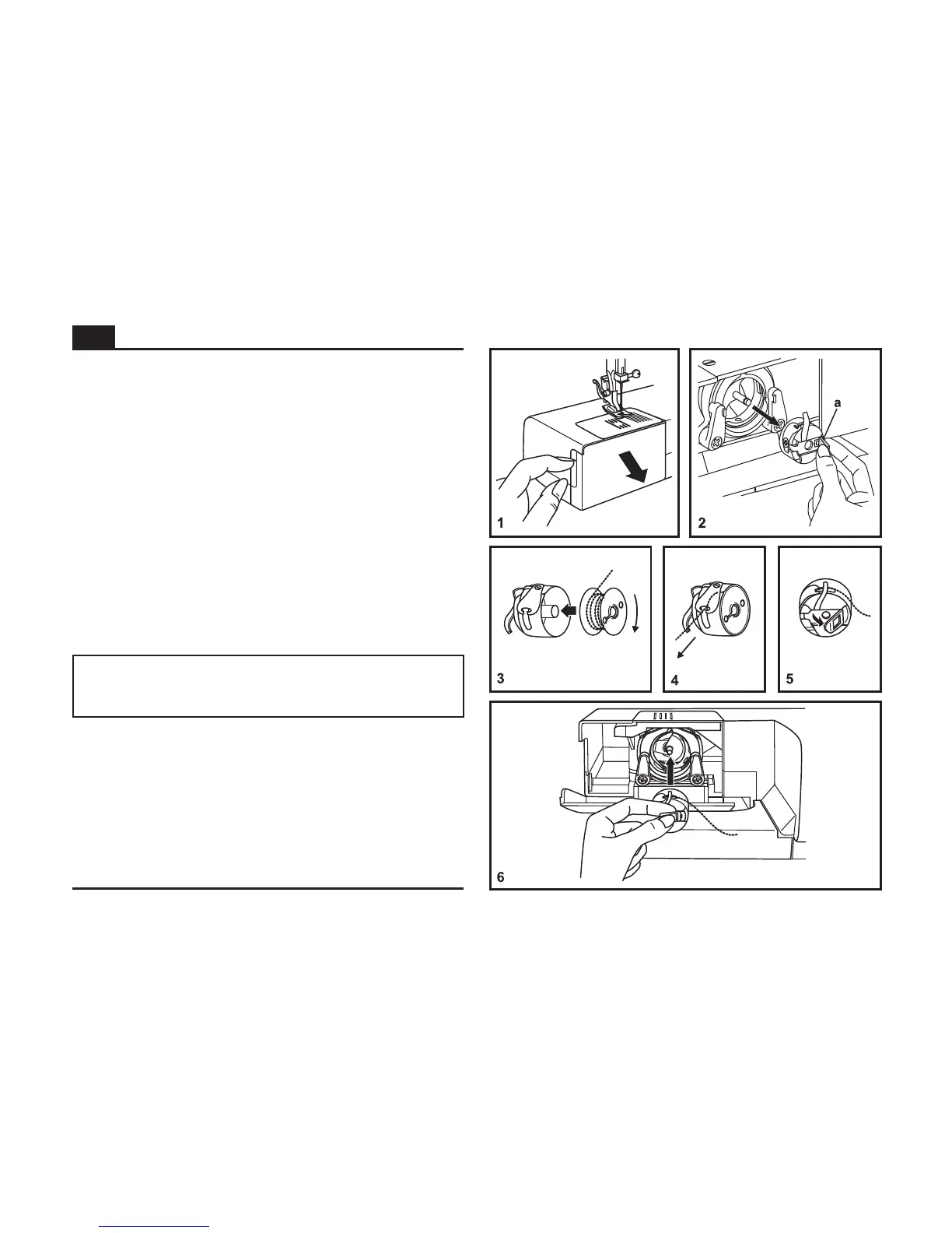 2. Pull the bobbin case tab (a) and remove the bobbin case.
