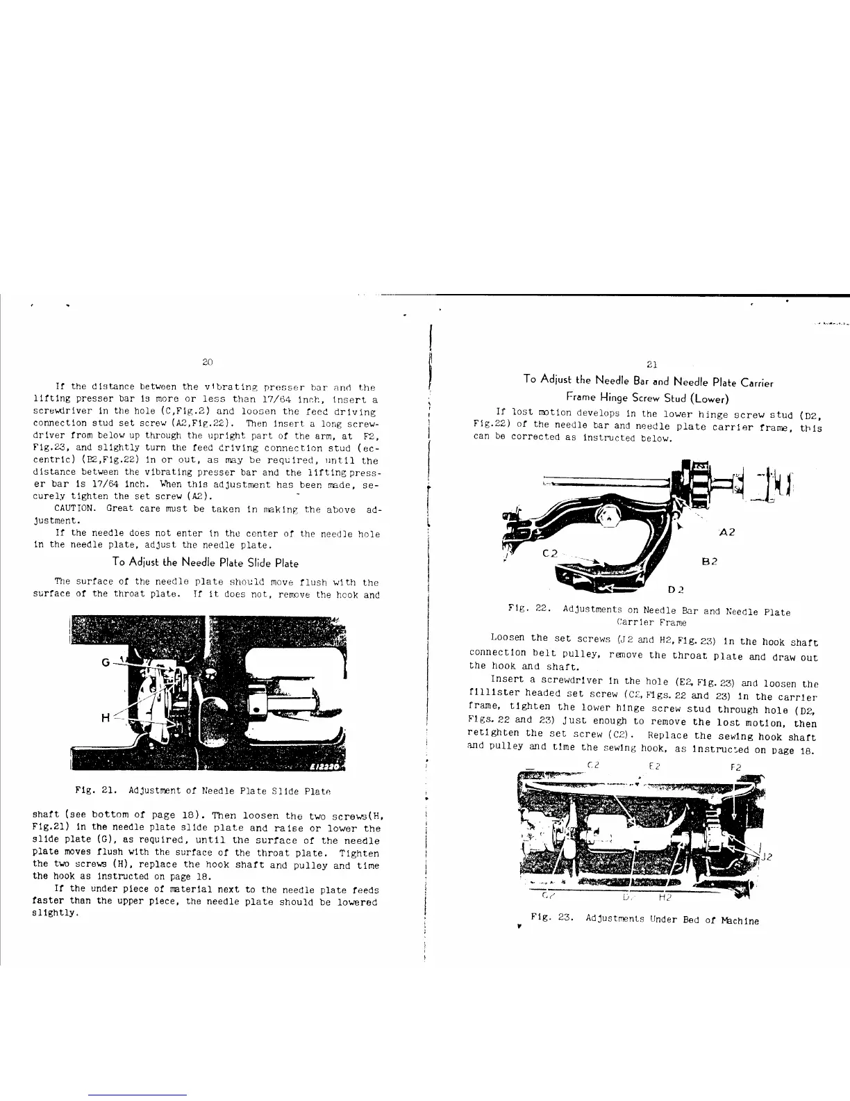 Singer 151W1 - Plate and Frame Adjustments; Needle Plate Slide Plate Alignment; Needle Bar and Carrier Frame Adjustment
