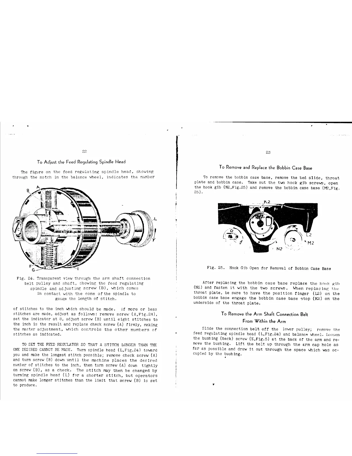 Singer 151W1 - Feed and Component Adjustments; Feed Regulating Spindle Head Adjustment; Bobbin Case Base and Arm Shaft Belt Removal