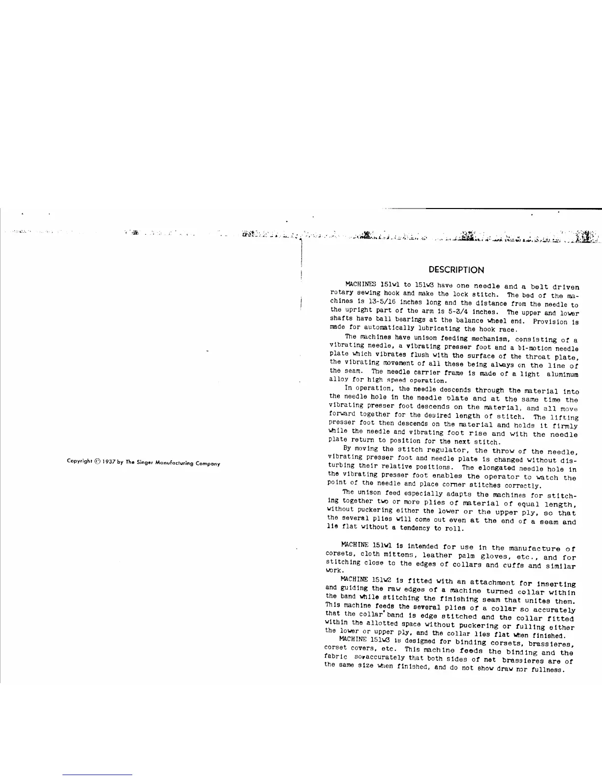 Singer 151W1 - Machine Description; General Features and Models; Model-Specific Applications
