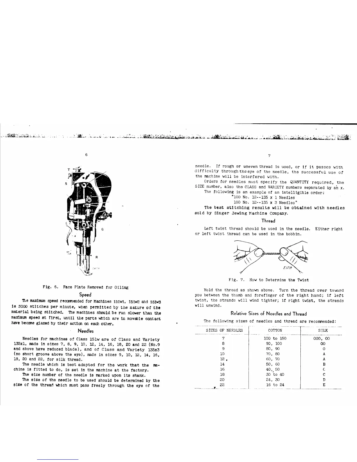 Singer 151W1 - Machine Setup and Operation; Needles, Thread, and Speed