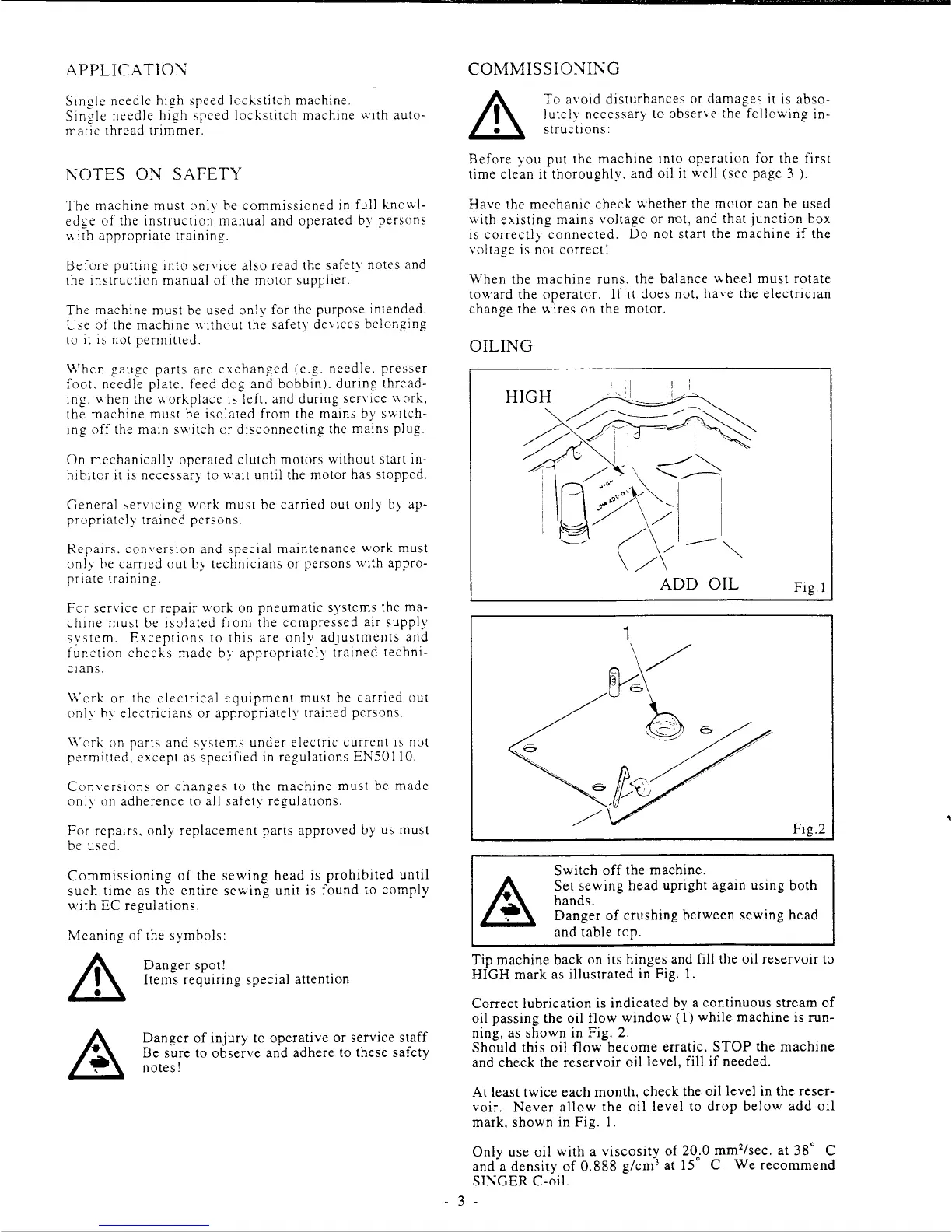 Singer 1591D200A - Application; Notes on Safety; Commissioning; Oiling