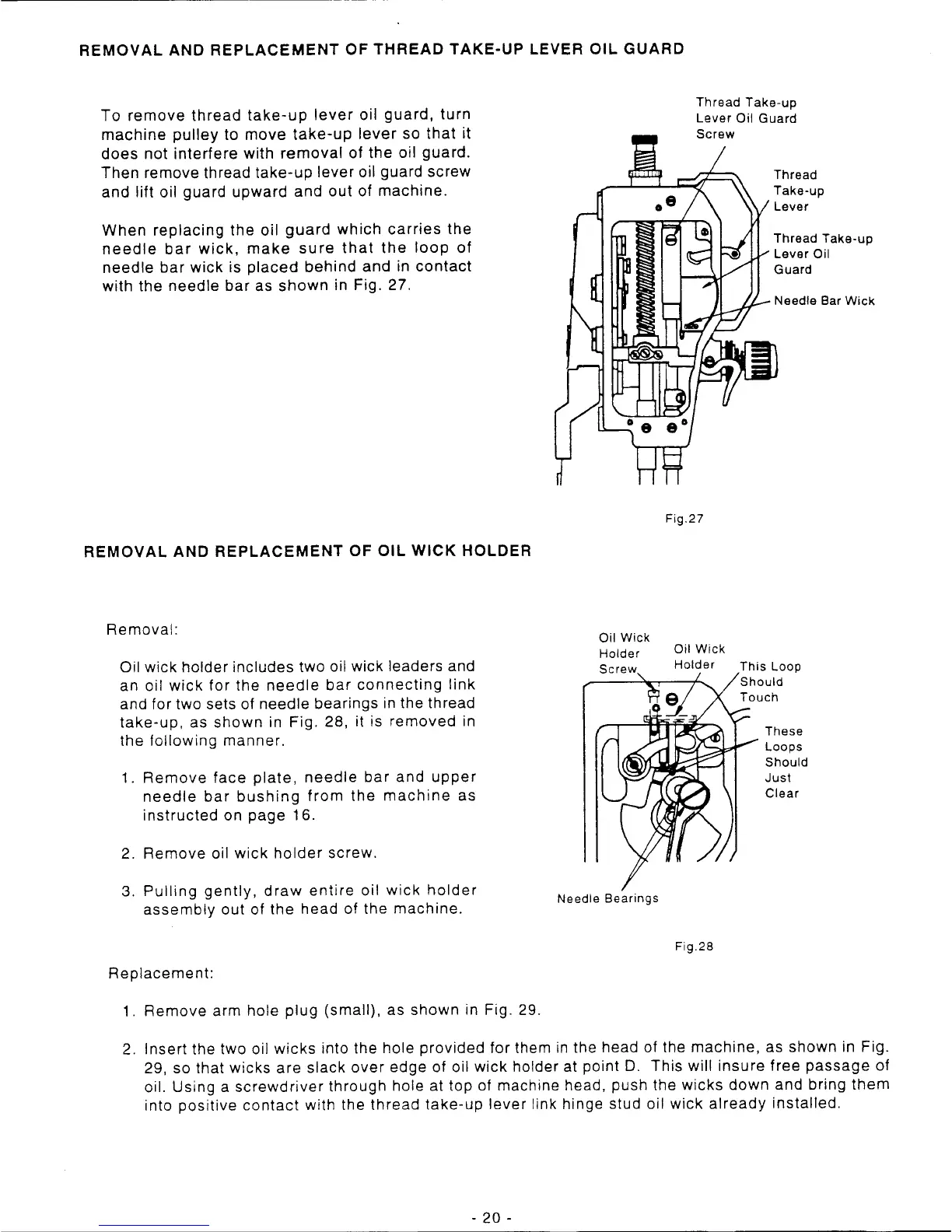 Singer 1591D300A - Removal and Replacement of Thread Take-Up Lever Oil Guard; Removal and Replacement of Oil Wick Holder