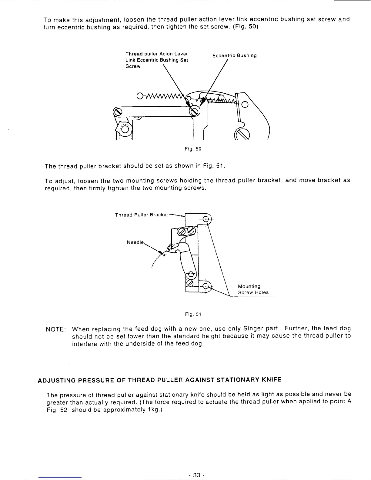 Singer 1591D300G - Adjusting Pressure of Thread Puller against Stationary Knife