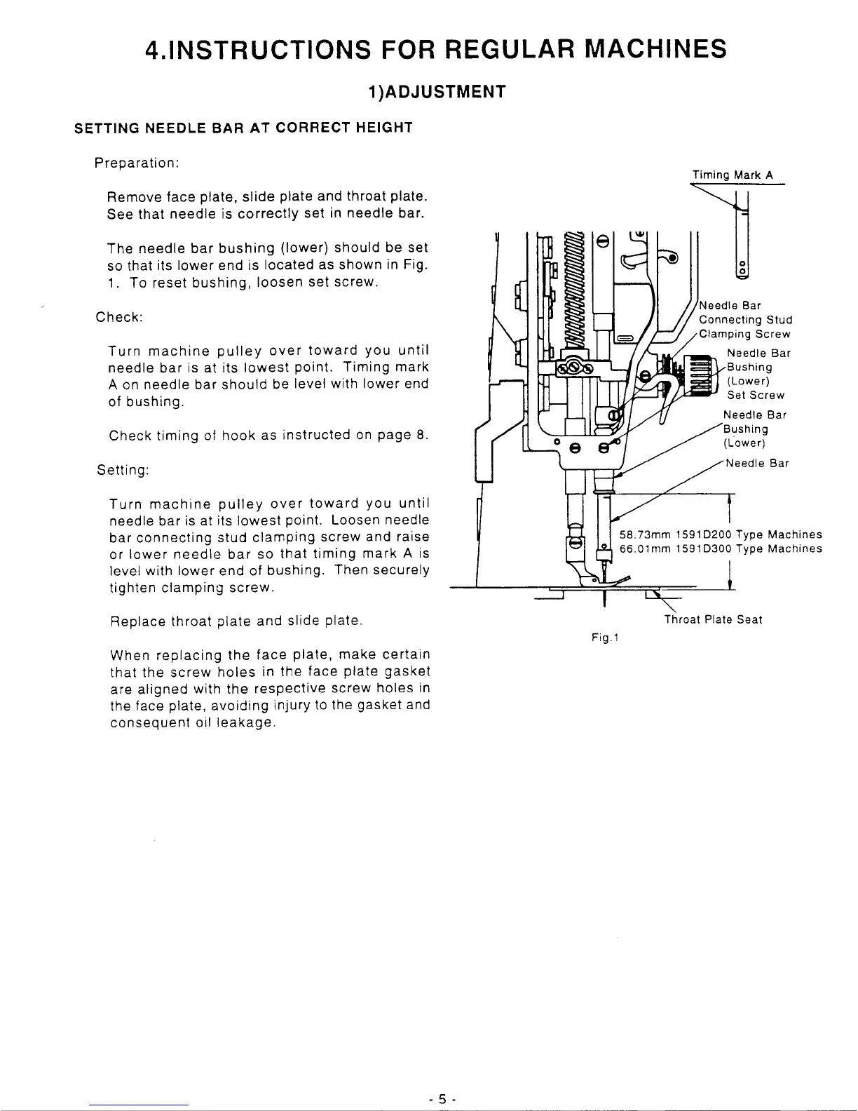 Singer 1591D300G - 4. INSTRUCTIONS FOR REGULAR MACHINES; 1) ADJUSTMENTS
