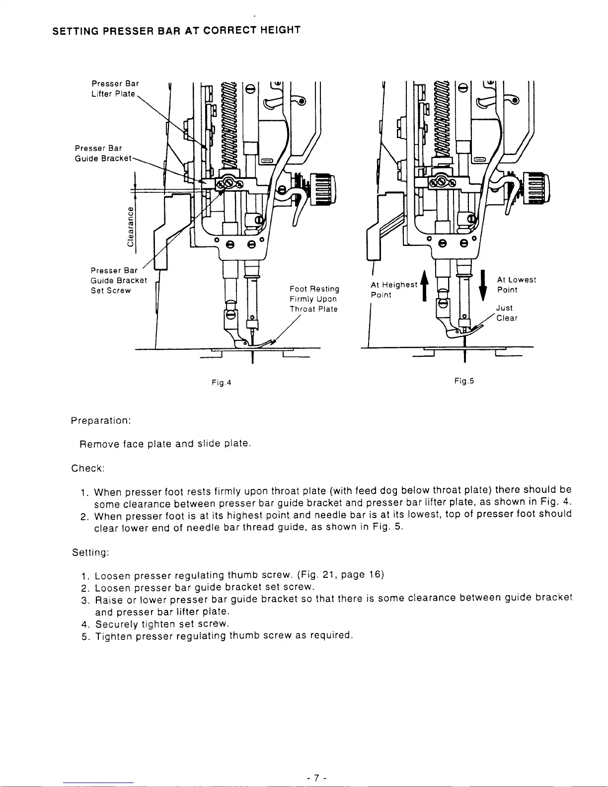 Singer 1591D300G - Setting Presser Bar at Correct Height
