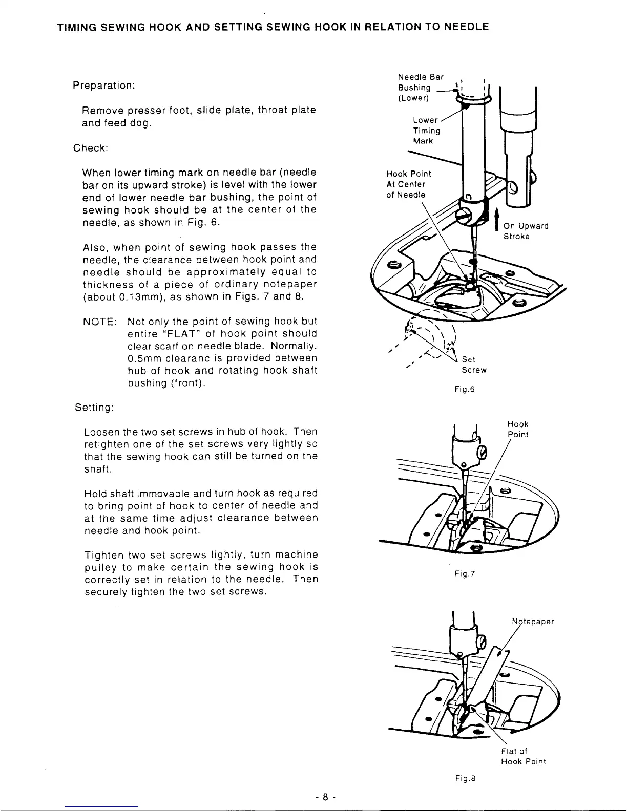 Singer 1591D300G - Timing Sewing Hook and Setting Sewing Hook in Relation to Needle