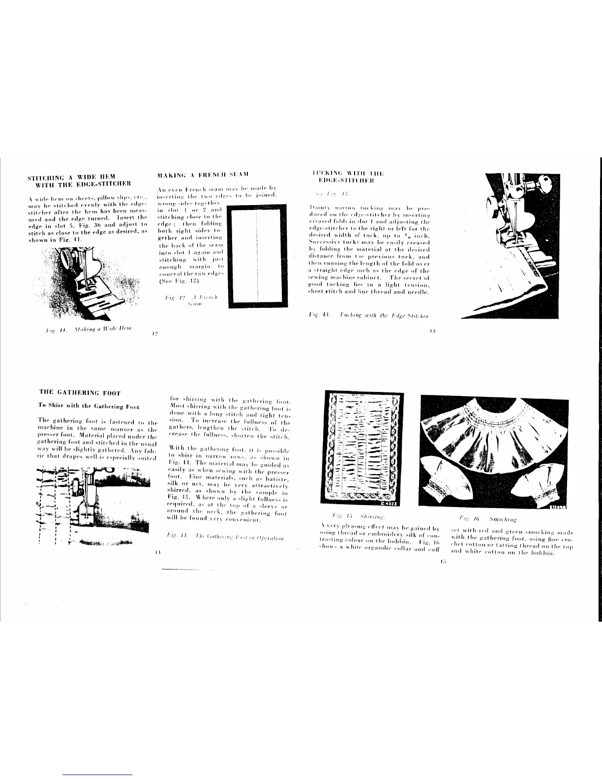 Singer 15K - The Gathering Foot; Stitching a Wide Hem with the Edge-Stitcher; Making a French Seam, Tucking with the Edge-Stitcher; To Shirr with the Gathering Foot