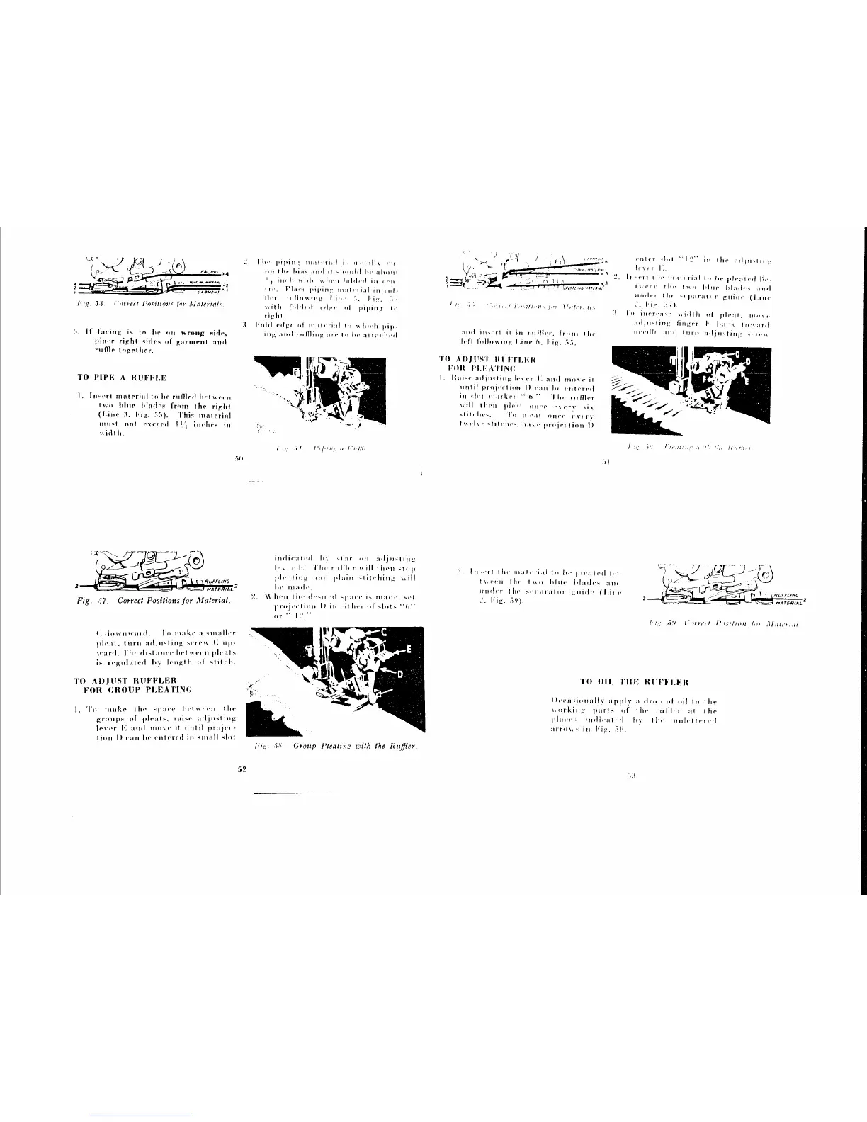 Singer 15K - To Pipe a Ruffle; To Adjust Ruffler for Pleating; To Adjust Ruffler for Group Pleating; To Oil the Ruffler