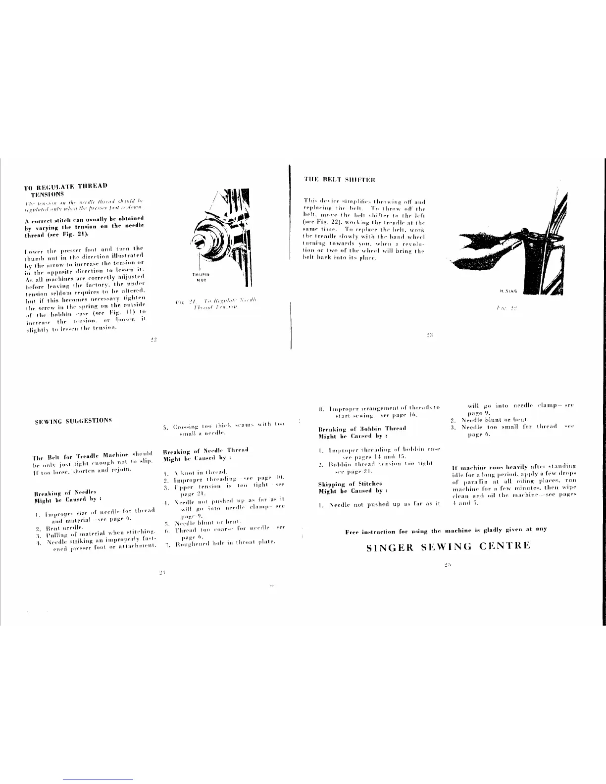 Singer 15K - Presser Foot and Thread Tension Control; Presser Foot Pressure Adjustment; Thread Tension Regulation
