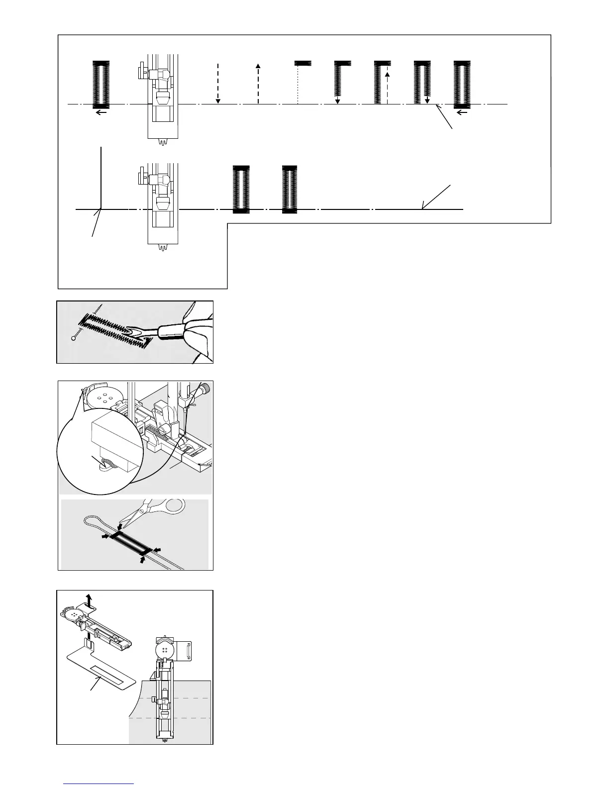 sicksackstygnen syr över tråden.