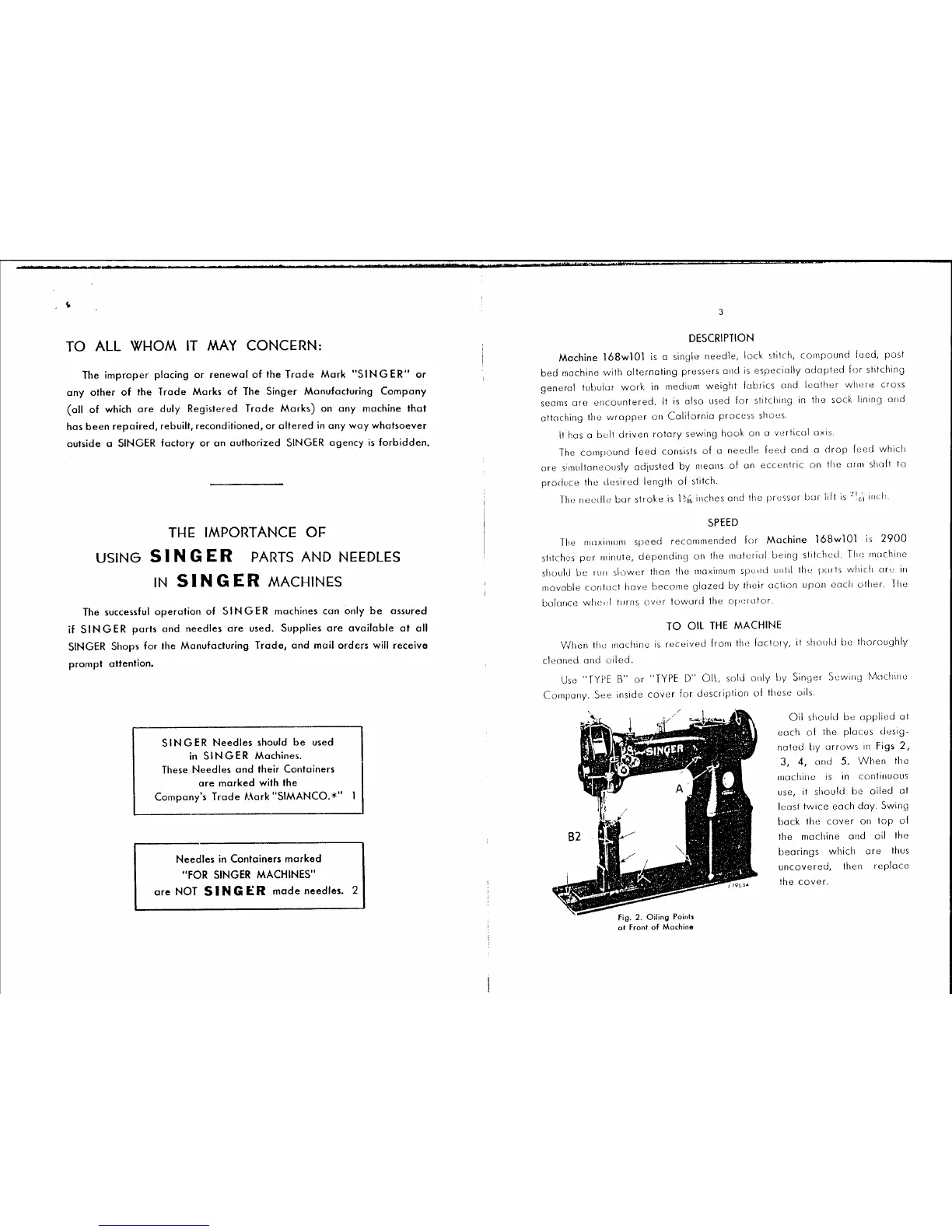 Singer 168W101 - General Disclaimer on Trademark Use; Prohibition of Unauthorized Trademark Use; Importance of Genuine Singer Parts; Using Singer Needles