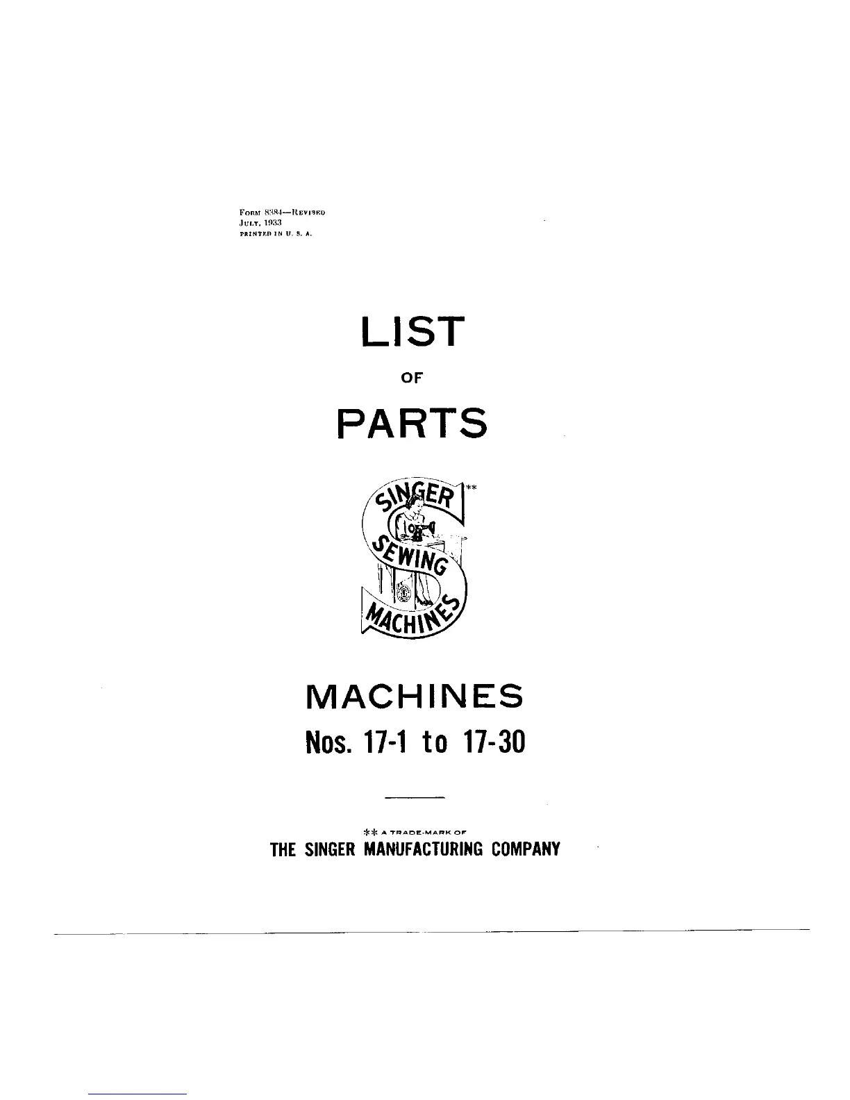 Singer 17-1 - Singer Sewing Machine Parts Overview