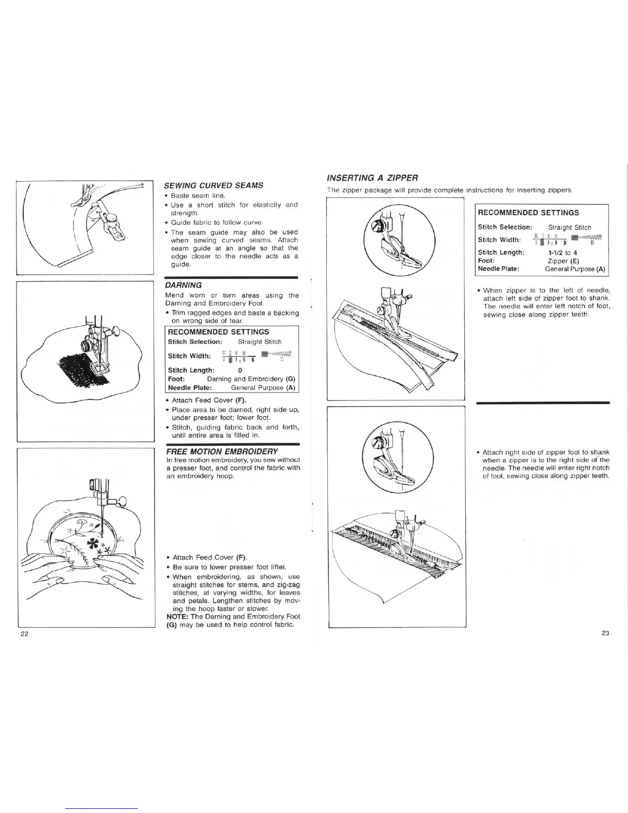 Singer 17 PATTERN SEWING MACHINE - Sewing Curved Seams; Darning; Free Motion Embroidery; Inserting a Zipper