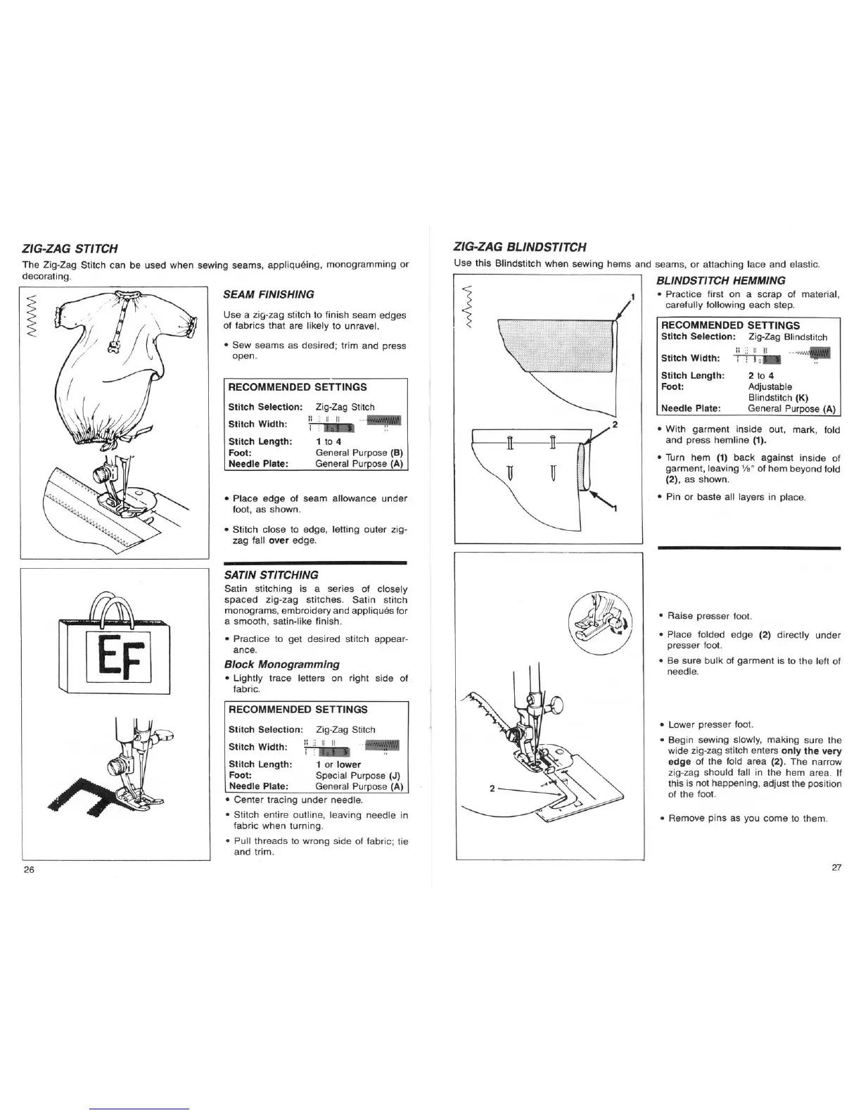 Singer 17 PATTERN SEWING MACHINE - Zig-Zag Stitch; Seam Finishing; Satin Stitching; Zig-Zag Blindstitch