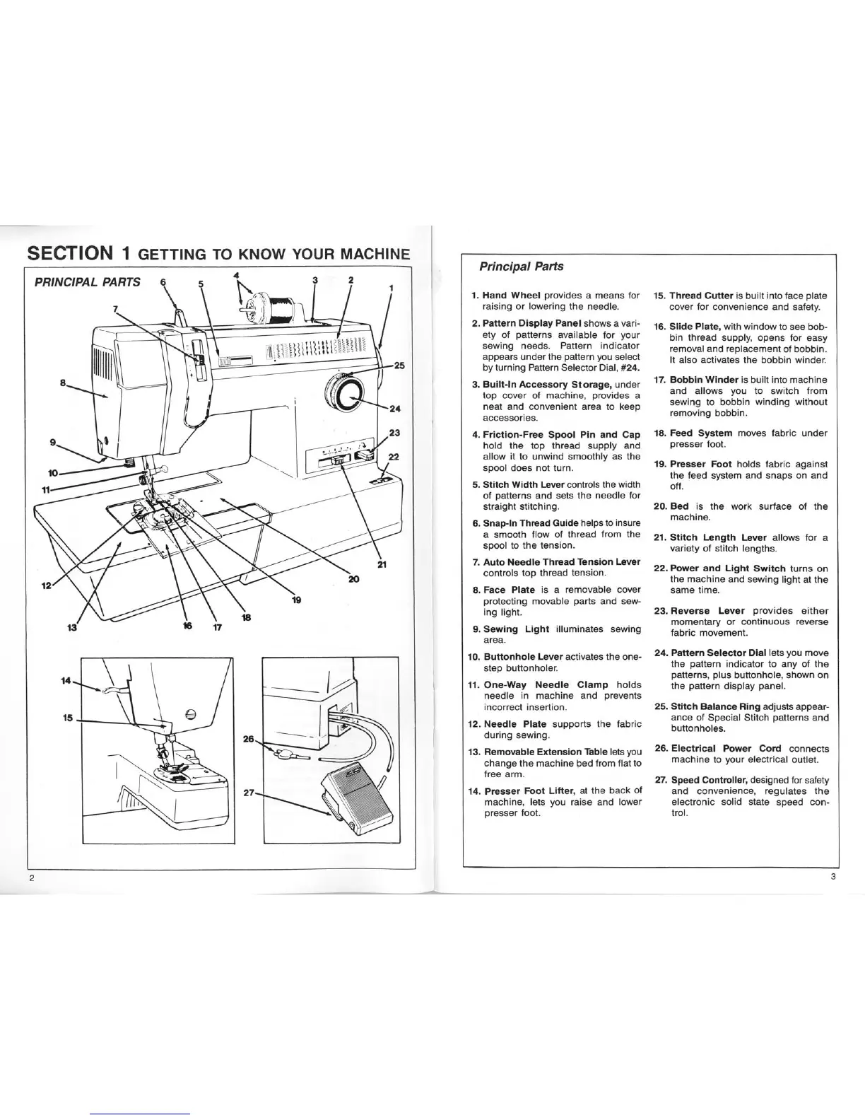 Singer 17 PATTERN SEWING MACHINE - Getting to Know Your Machine; Principal Parts