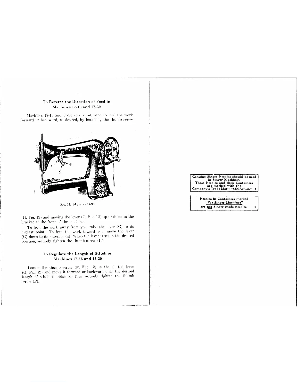 Singer 17 - Feed Direction and Stitch Length Adjustment