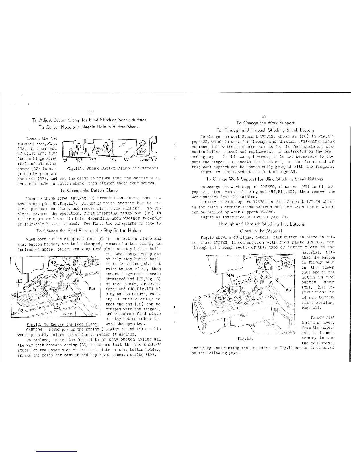 Singer 175-60 - Button Clamp and Work Support Adjustments; Shank Button Clamp Centering & Change; Feed Plate;Holder Change & Flat Button Stitching (Close); Work Support Change & Flat Button Stitching (Away)