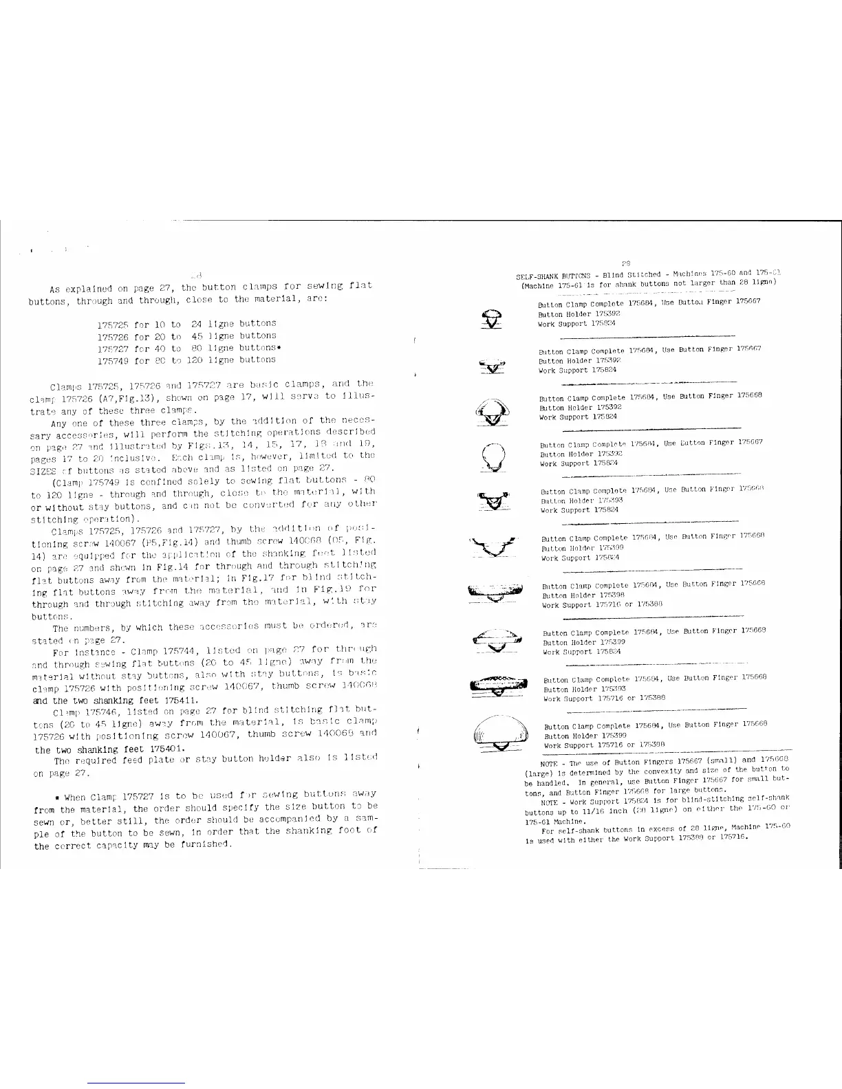 Singer 175-60 - Button Clamp Specifications; Self-Shank Buttons: Blind Stitched Fittings