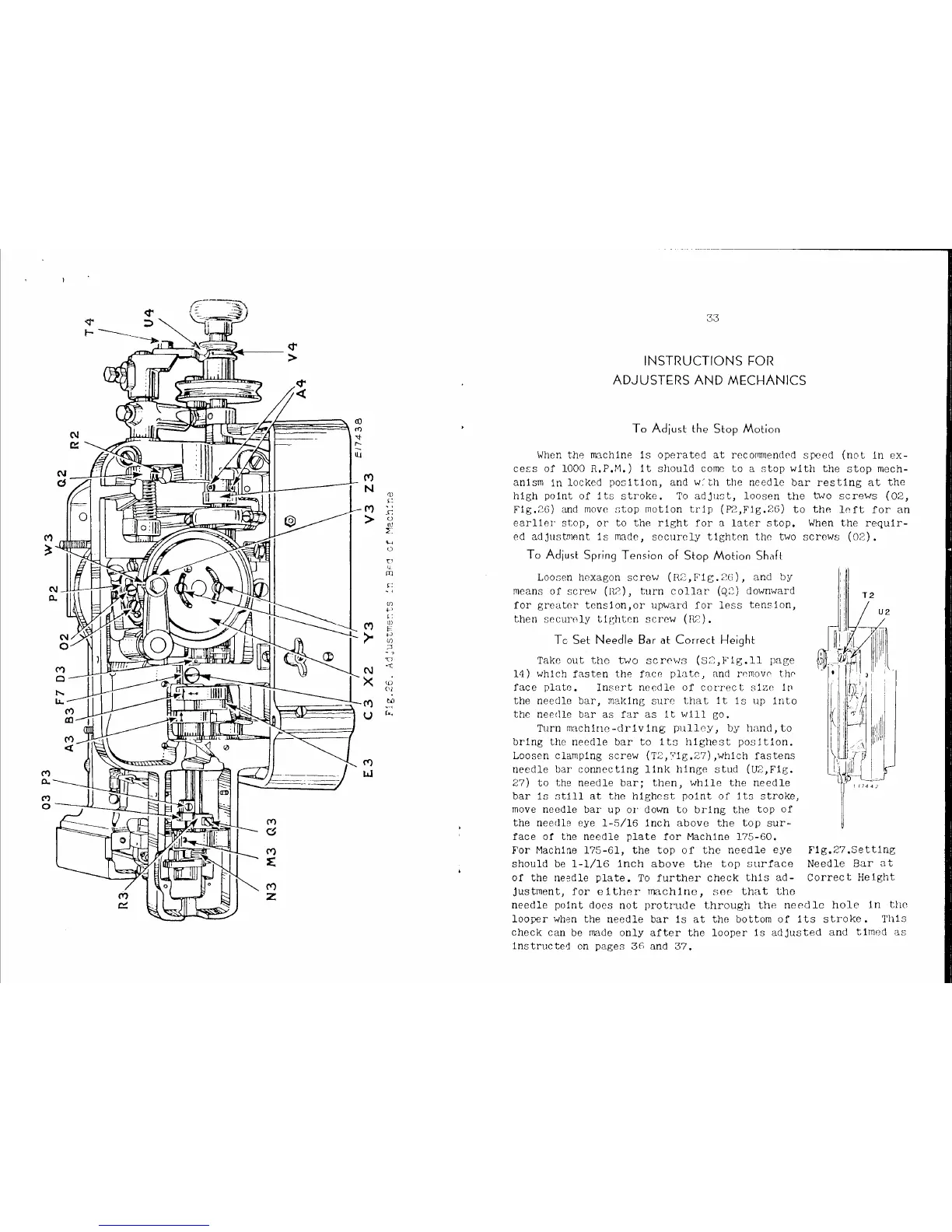 Singer 175-60 - Adjuster and Mechanic Instructions; Adjusting the Stop Motion; Stop Motion Shaft Spring Tension; Setting Needle Bar Height