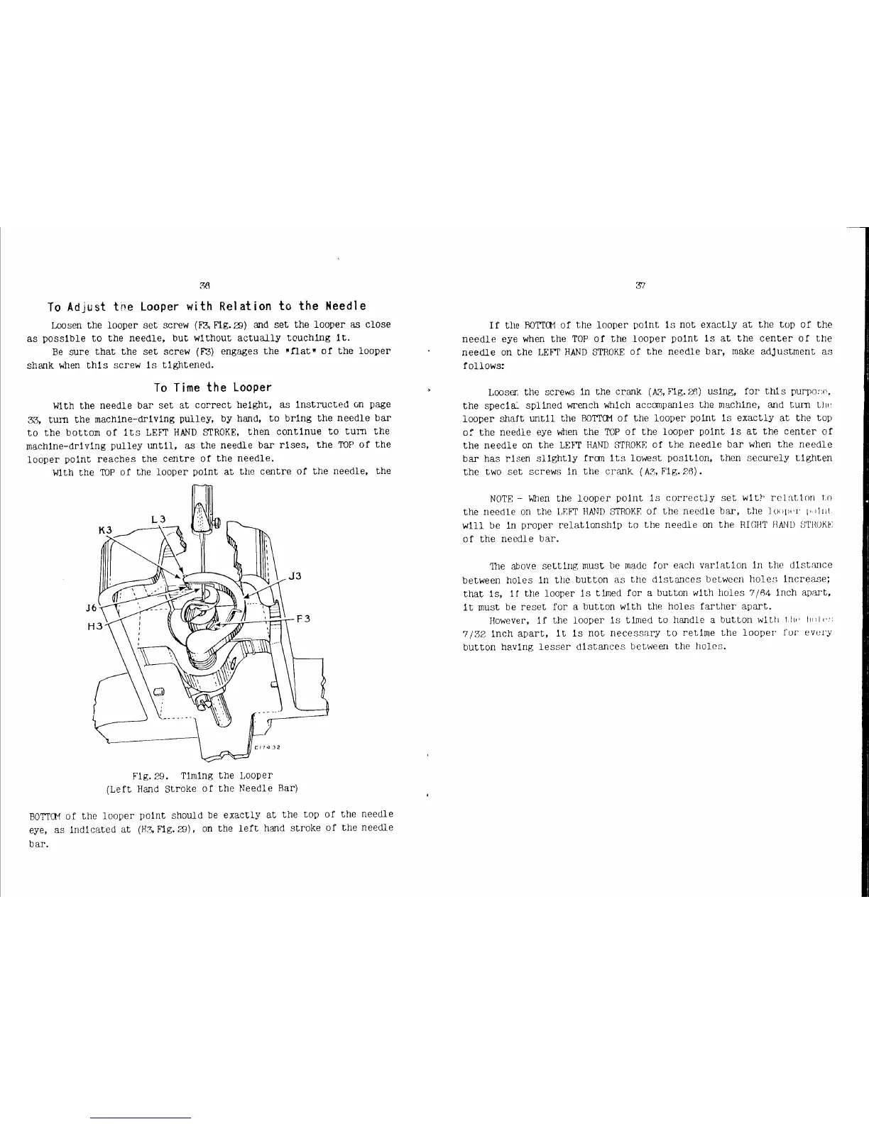 Singer 175-60 - Looper Adjustment and Timing; Looper Relation to Needle; Timing the Looper