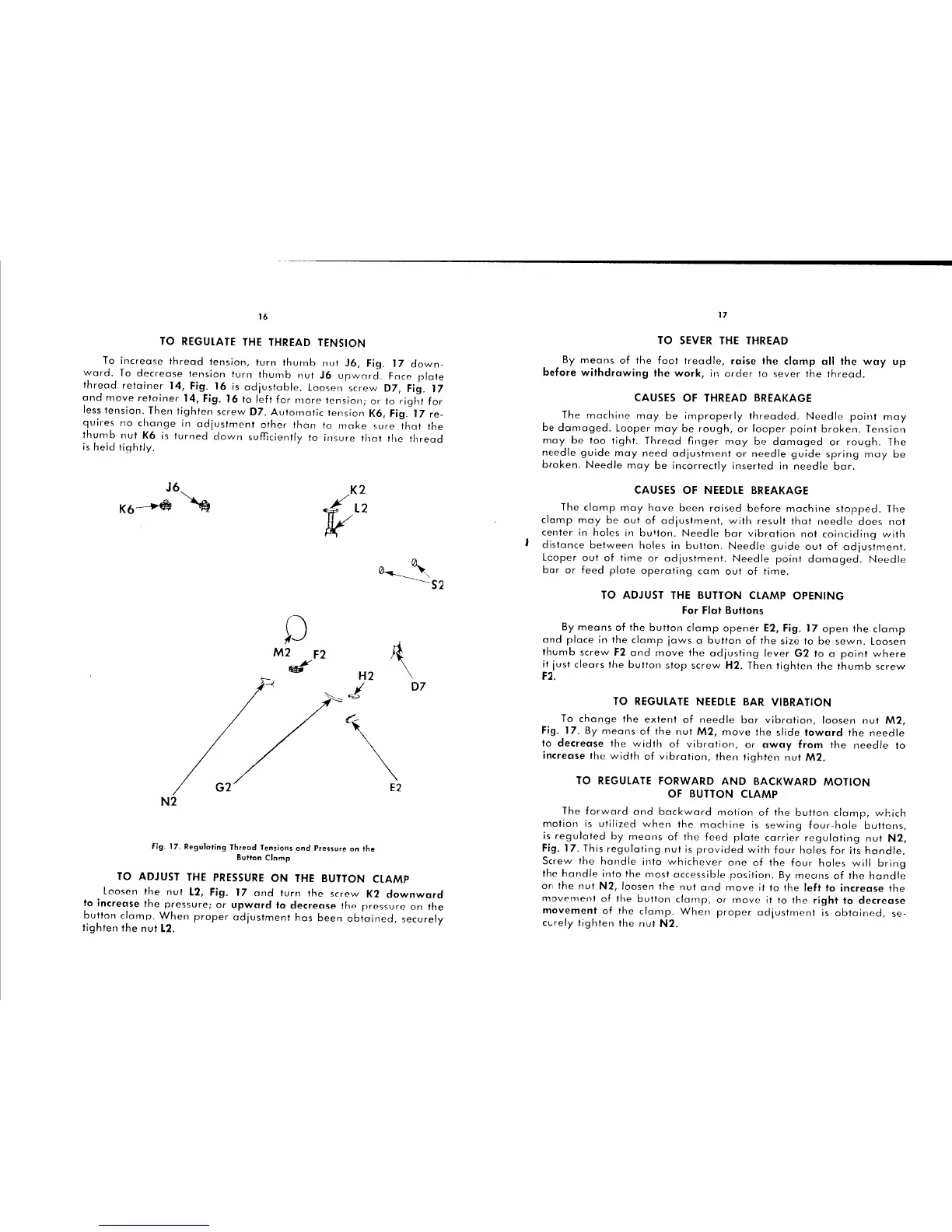 Singer 175-62 - To Regulate the Thread Tension; To Adjust the Pressure on the Button Clamp; To Regulate Needle Bar Vibration; To Regulate Forward and Backward Motion of Button Clamp