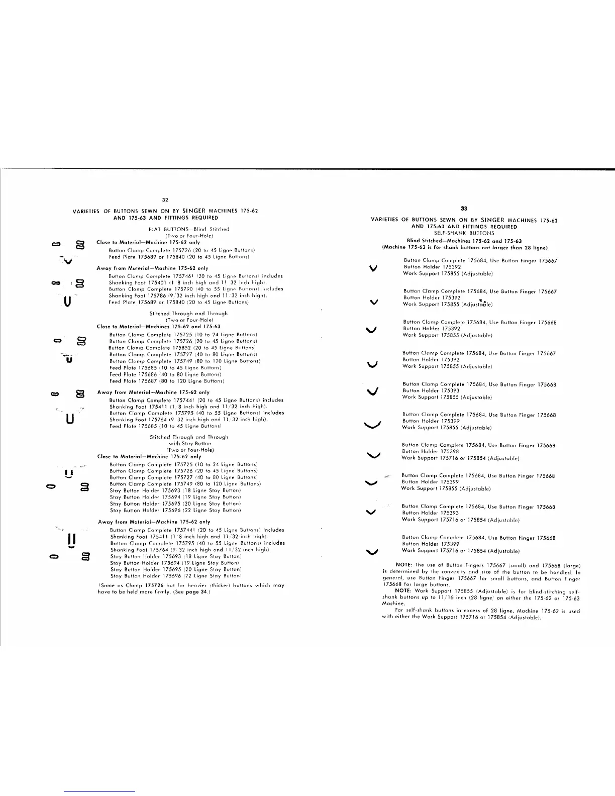 Singer 175-62 - Varieties of Buttons Sewn by the Machines and Fittings Required