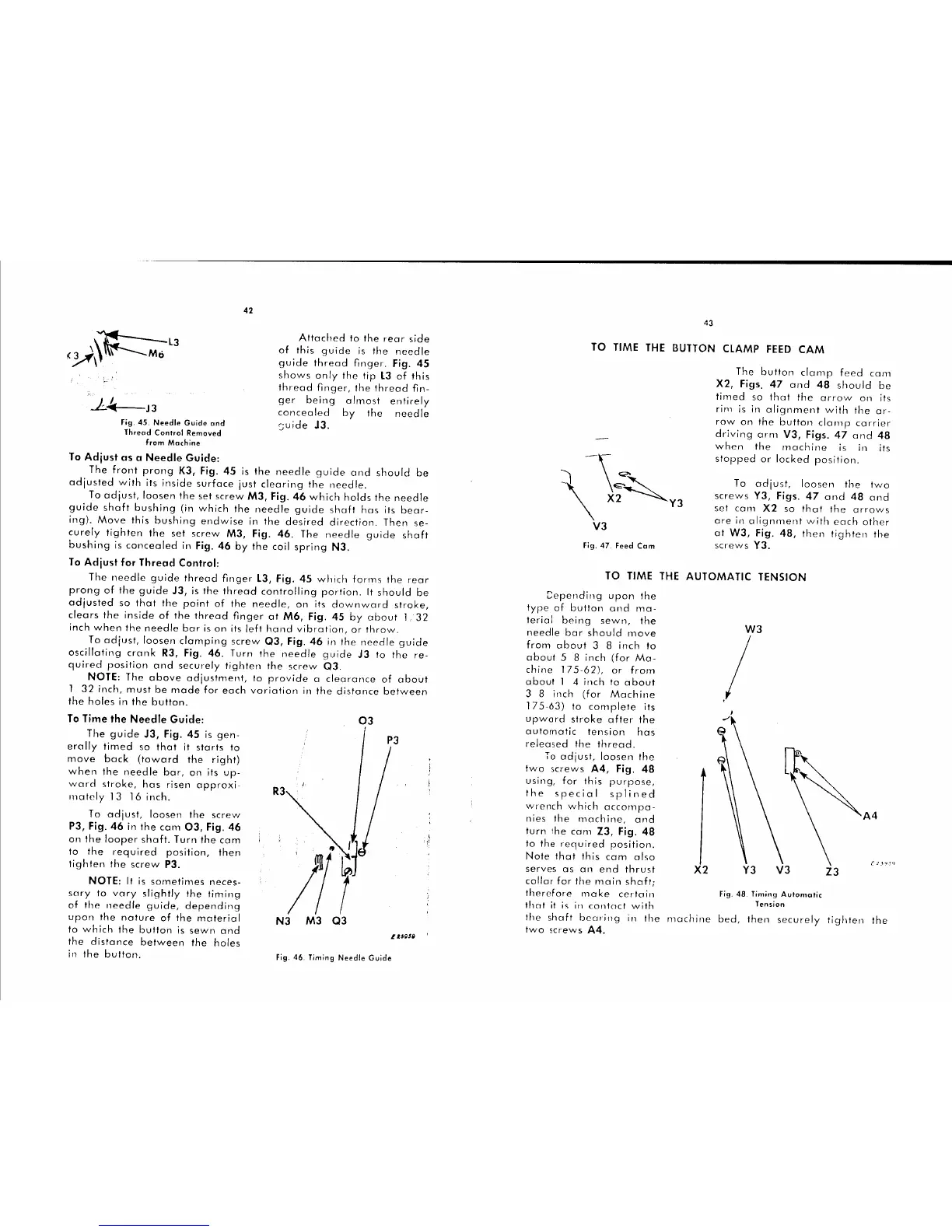 Singer 175-62 - To Time the Button Clamp Feed Cam; To Time the Automatic Tension; To Adjust for Thread Control; To Time the Needle Guide