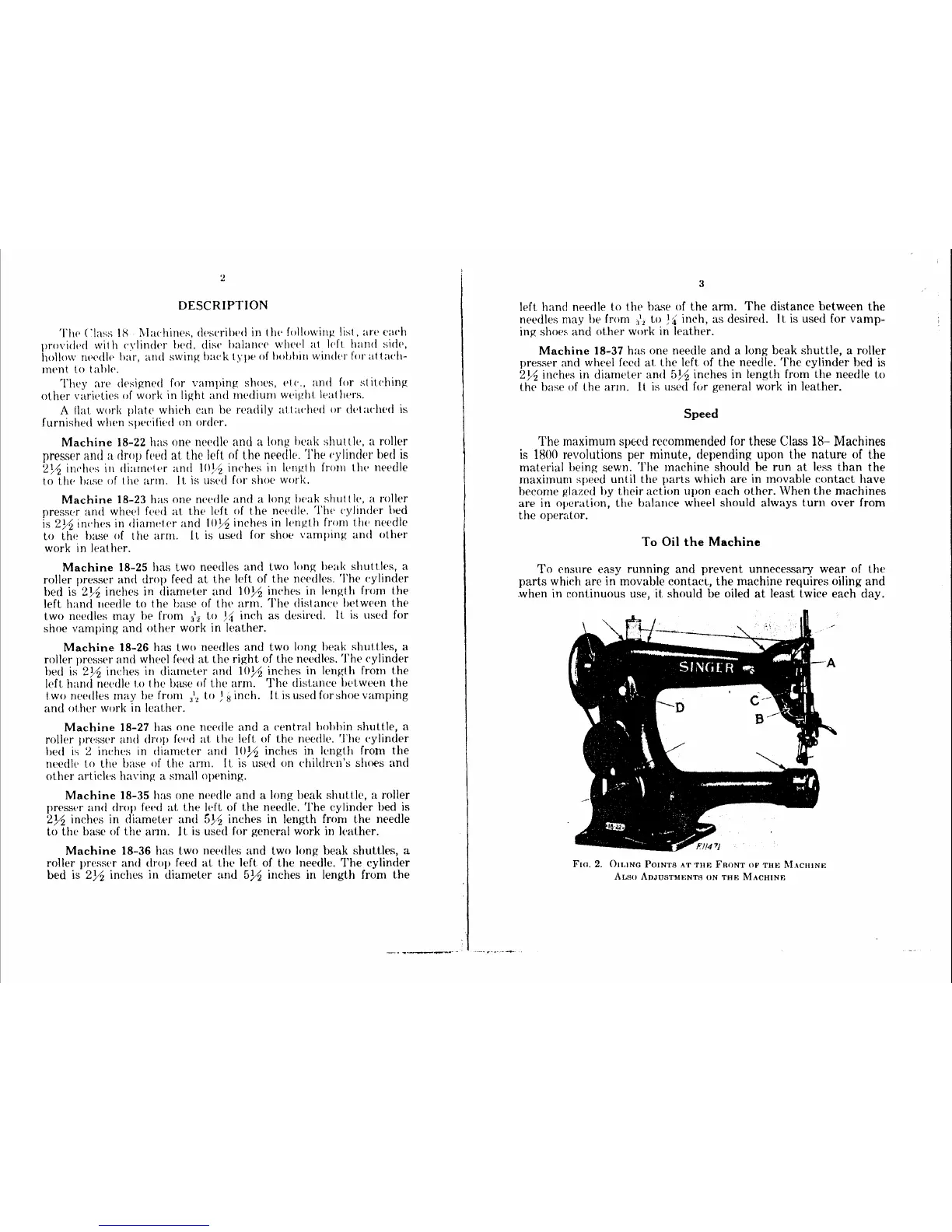 Singer 18-22 - Class 18 Machine Descriptions; Machine Speed Recommendations; Machine Oiling Procedures