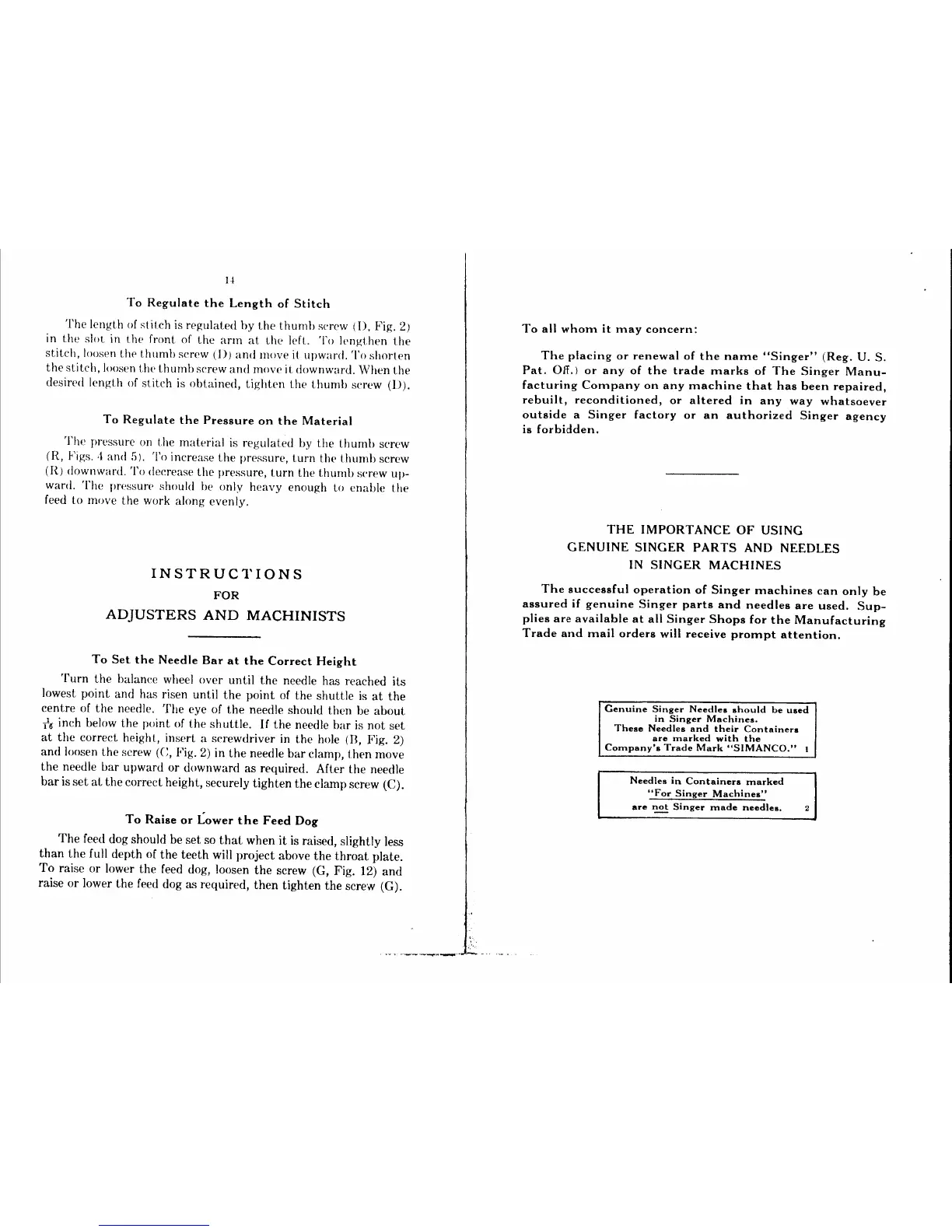 Singer 18-22 - Regulating Stitch Length; Regulating Pressure on Material; Machine Adjustments and Parts; Setting the Needle Bar Height