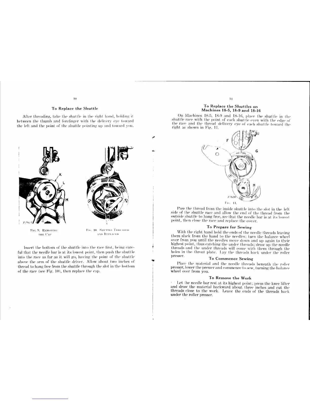 Singer 18 - Sewing Preparation and Shuttle Replacement; Replacing the Shuttle in the Machine; Preparing for Sewing and Removing Work