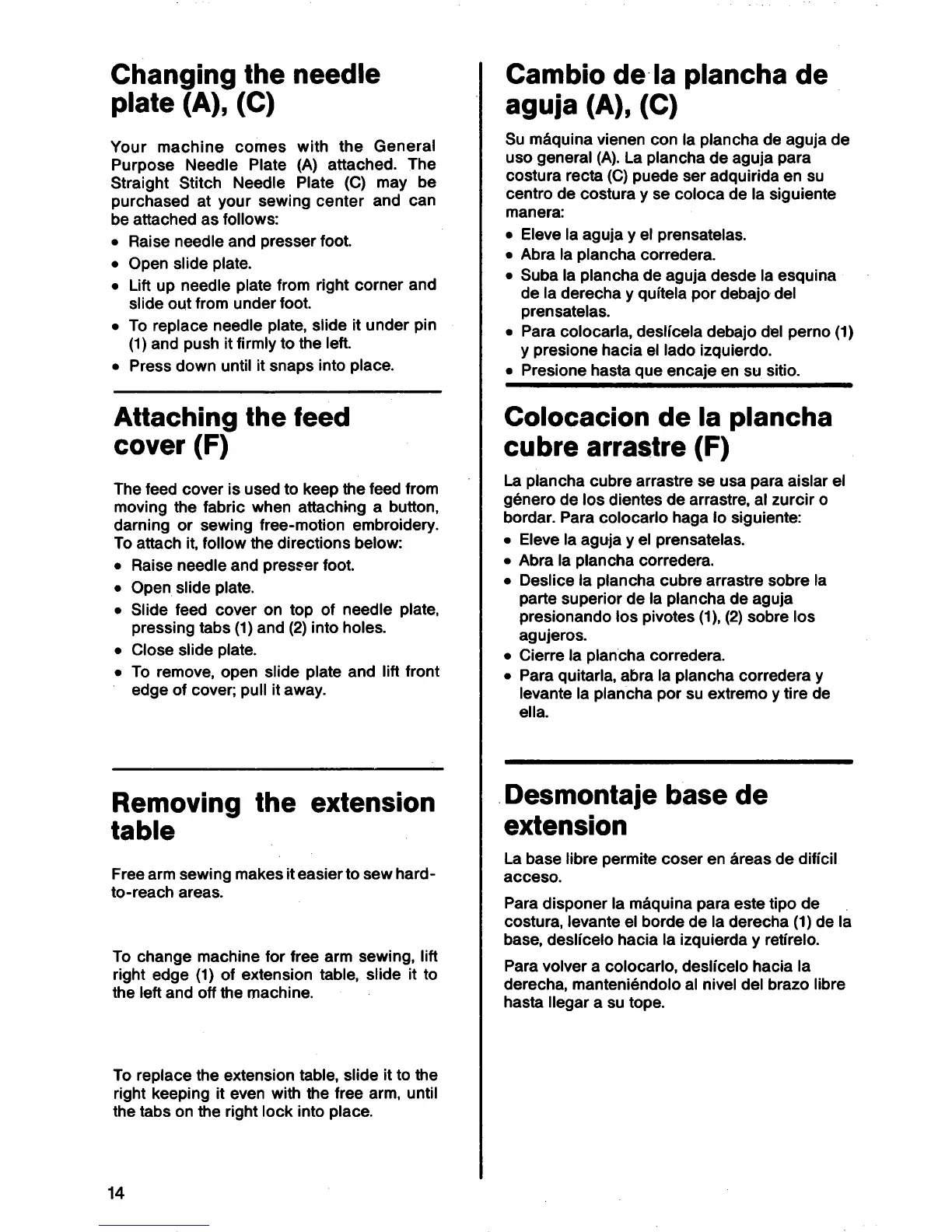 Singer 1802 - Changing the Needle Plate(A),(C); Attaching the Feed Cover (F); Removing the Extension Table