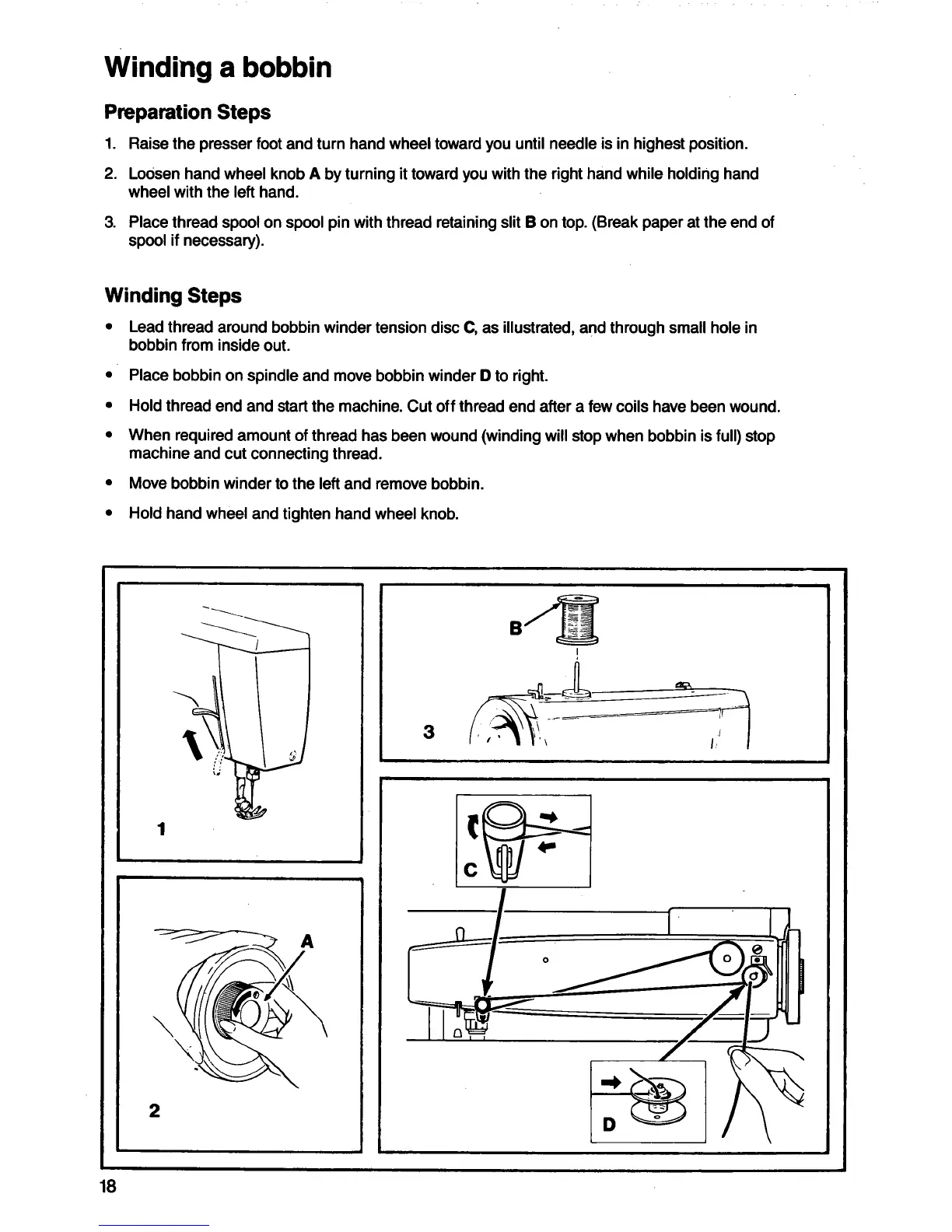 Singer 1802 - Bobbin winding and insertion; Winding a bobbin